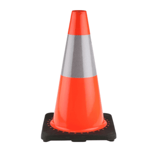 30″ Black base with 6″ Sticker Rubberized Traffic Cone
