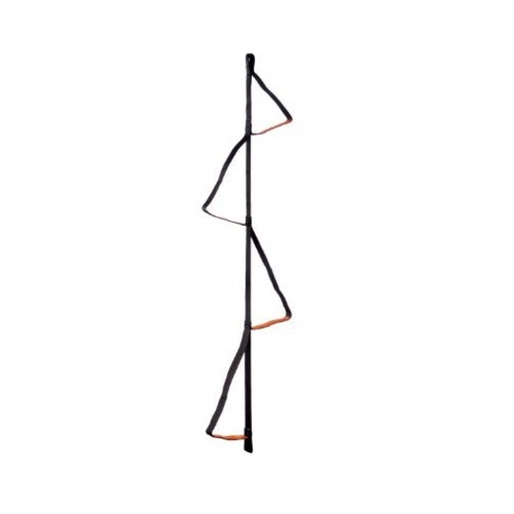 The LOOPING four-step etrier attaches to an ASCENSION rope clamp for rope ascents or directly onto an anchor for progression in overhangs.